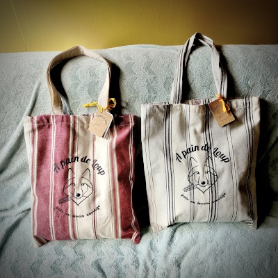 ![]() | Tote bag à pain Sac à pain brodé grand format 44*39cm porté épaule En savoir plus Pour venir chercher votre pain au fournil et le stocker à la maison. Rétréci d’environ 10% après lavage préciser en commentaire quel coloris : grenat ou gris | 18.50 € la pièce | |
