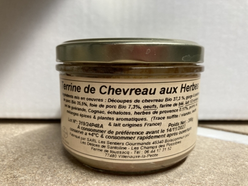 ![]() | Terrine de chevreau/porc herbes de Provence Terrine de chevreau/porc herbes de Provence Conserve de 200g En savoir plus Conserve à base de viande de notre elevage.