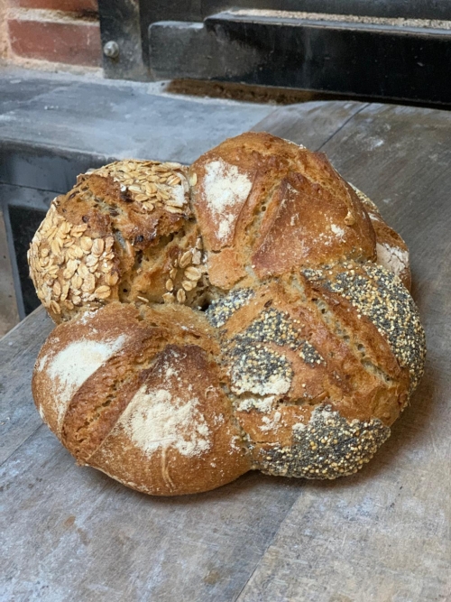 ![]() | Trèfle Treffle de 4 petits pains (campagne, complet, multi graines, fénugrec) | 500 g | 4.00 € la pièce |