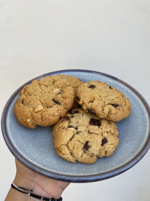 ![]() | Cookie beurre de cacahuète chocolat noir Cookie pécan chocolat au lait 75 gr En savoir plus Ingrédients: beurre, beurre de cacahuète, sucre cassonnade, oeuf, farine, levure, pépites de chocolat noir, cacahuètes | 75 g | 2.50 € la pièce |