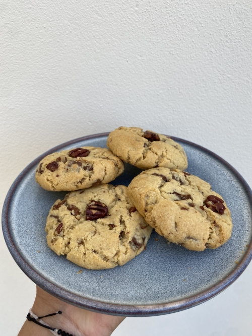 ![]() | Cookie noix de pécan chocolat au lait Cookie pécan chocolat au lait 75 gr En savoir plus Ingrédients: beurre, sucre cassonnade, oeuf, farine, levure, pépites de chocolat au lait, noix de pécan | 75 g | 2.50 € la pièce |
