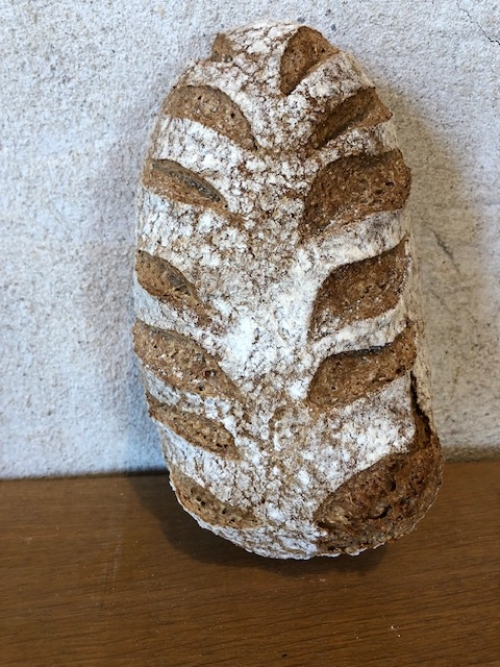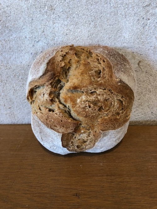 | Campagne 70% farine de froment T80, 30% farine de seigle, eau, levain liquide froment et seigle, sel de noirmoutier | 500 g | 3.00 € la pièce |