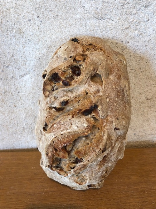 | Noisette Amande Raisin Farine de froment T80,eau, levain liquide froment et seigle, sel de noirmoutier, Noisette, Amande, Raisin | 400 g | 3.30 € la pièce |