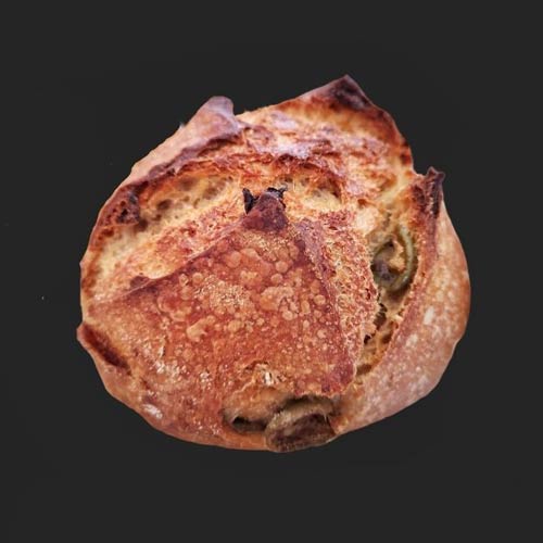 ![]() | Raisins-Noisettes Farine de froment T80 (semi-complète), eau filtrée, noisettes, raisins, levain de froment, sel de Guérande. En savoir plus Un pain de 500g préparé avec de la farine de froment T80, généreux en noisettes et en raisins. | 500 g | 5.00 € la pièce |