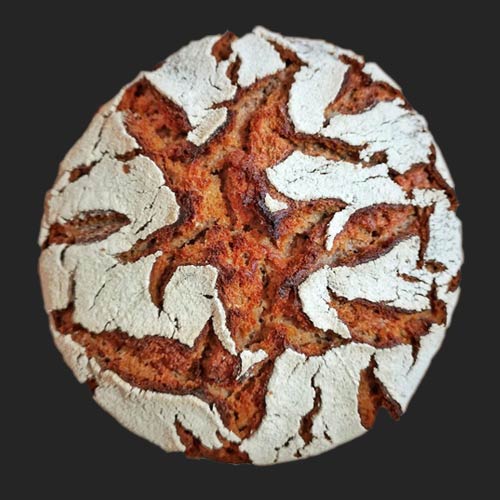 ![]() | Seigle-Châtaigne Farine de seigle T130, Farine de Châtaigne, eau filtrée, levain de froment, sel de Guérande. En savoir plus Une tourte de 700g, forte en caractère grâce à la farine de seigle, mais agrémentée de notes caramélisées et sucrées provenant de la farine de châtaigne. | 700 g | 7.00 € la pièce |