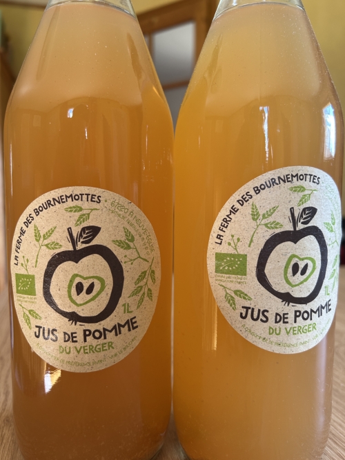 ![]() | JUS de POMMES bio Jus de pommes du verger En savoir plus De Mathilde de la ferme des Bournemottes , située à Neuves-Eglise (67, à coté de Villé) | 3.50 € la pièce |