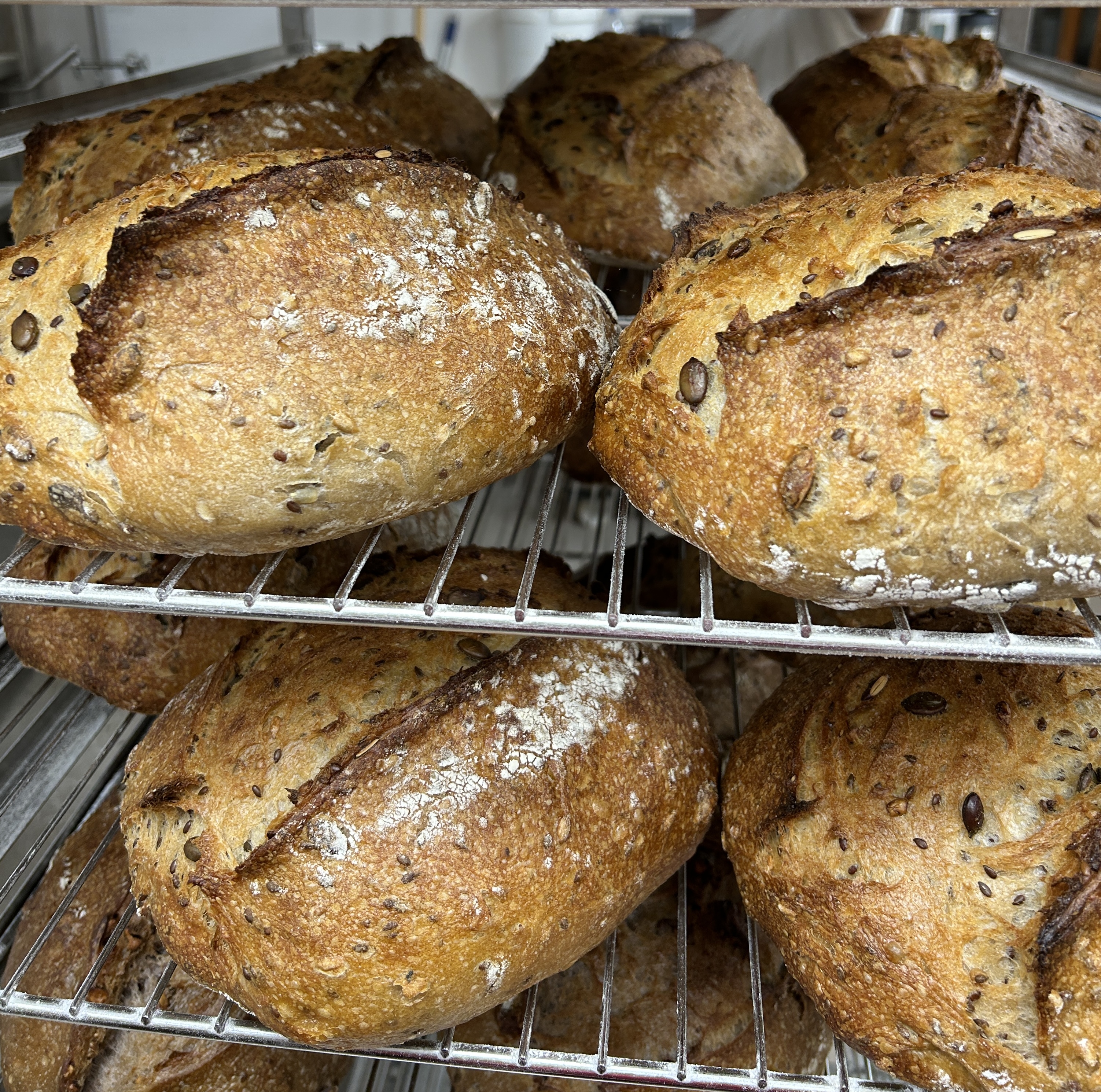 ![]() | GRAINES miche 1kg En savoir plus Ingrédients : Farine de blé semi-complète, levain de seigle (farine de seigle + eau), graines de tournesol, graines de courges, graines de lin, graines de pavot, eau, sel. | 1000 g | 7.00 € la pièce |